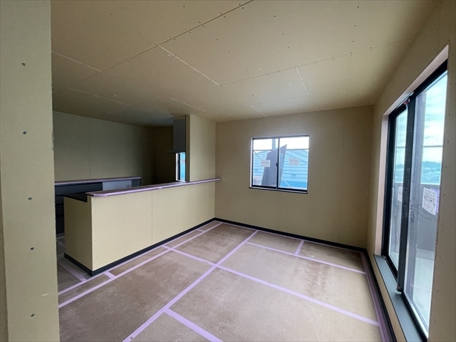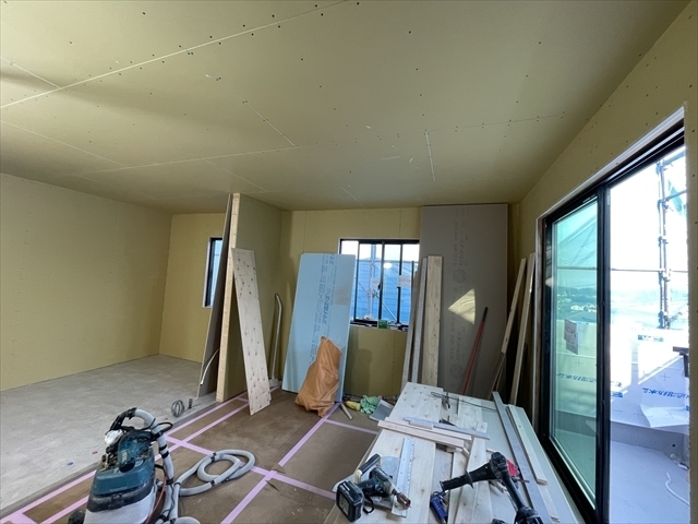 1階の石膏ボードとフローリングを張り進めています。外部はサイディングを張り始めました。