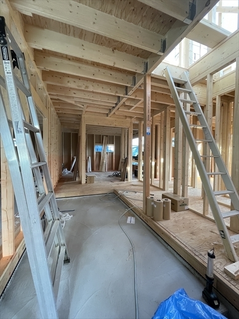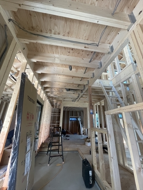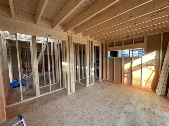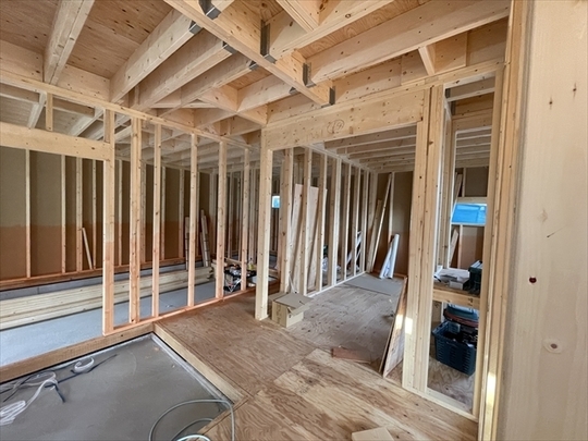 1階の石膏ボードとフローリングを張り進めています。外部はサイディングを張り始めました。
