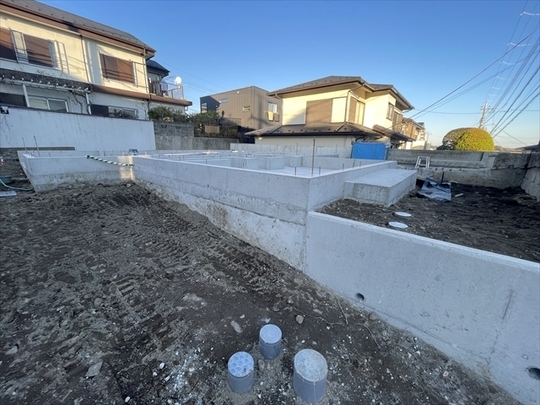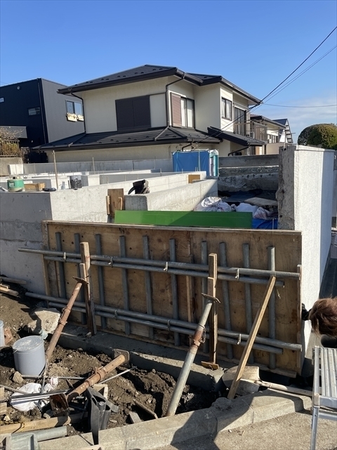 擁壁工事が終了しました。年明けより、足場の設置と木工事が始まります。