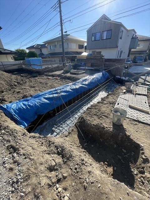 工事を開始しました。基礎工事を行っています。
