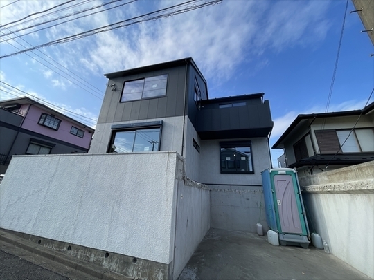造作工事が終了しました。外部はサイディングを張り終わり、シーリング工事を行います。