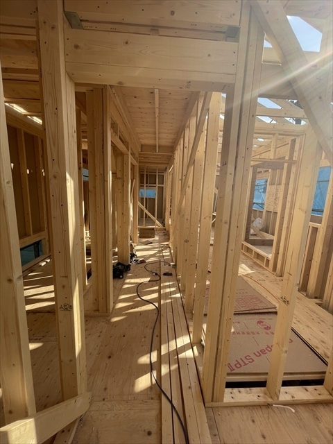 木工事を開始しました。基礎パッキンを設置し、土台敷きを行っています。