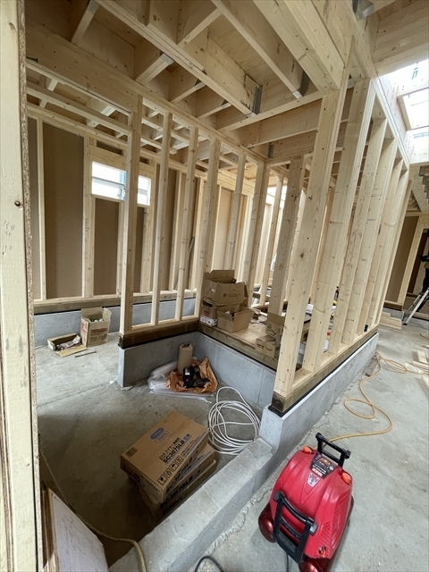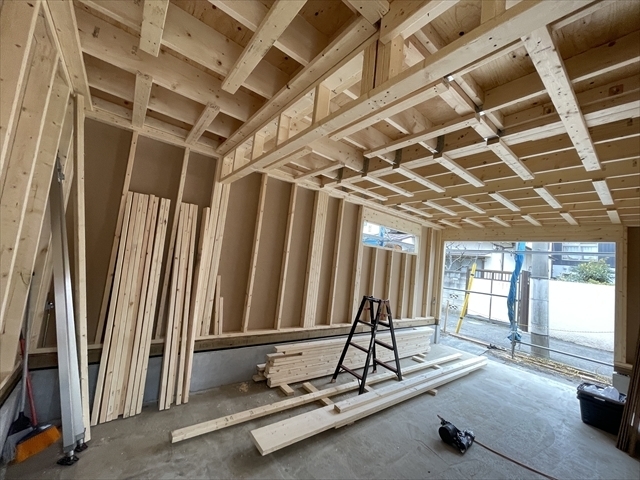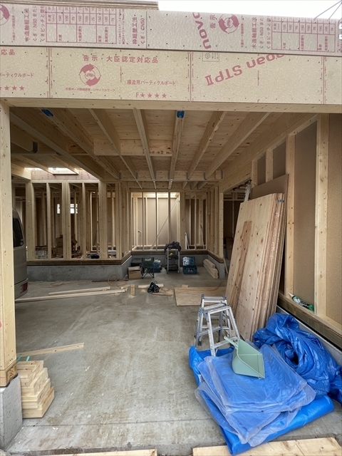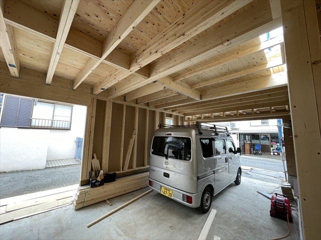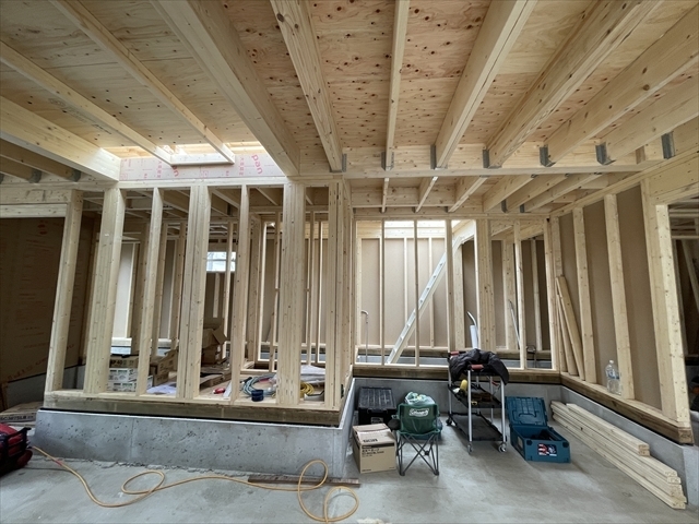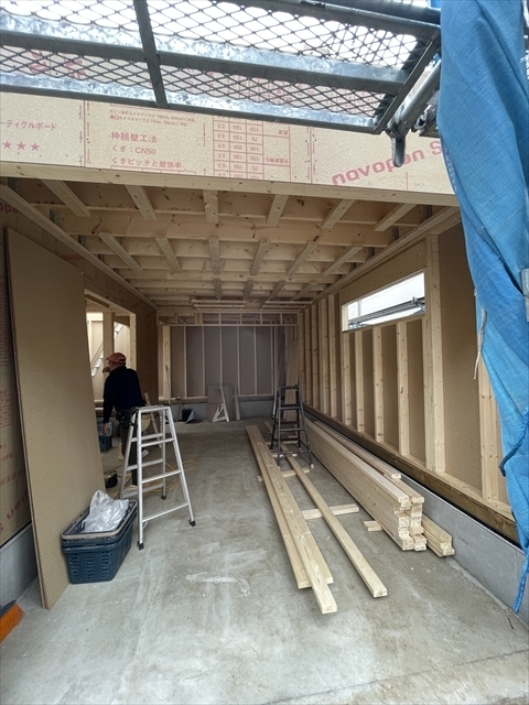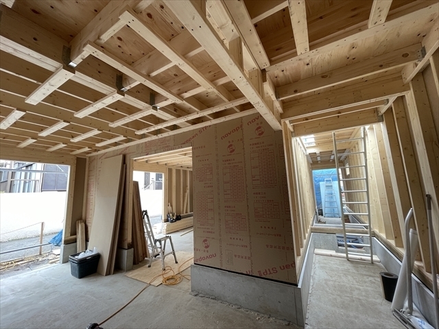 木工事を開始しました。基礎パッキンを設置し、土台敷きを行っています。