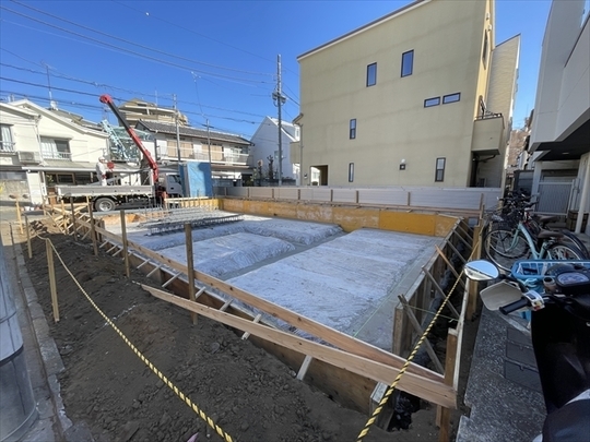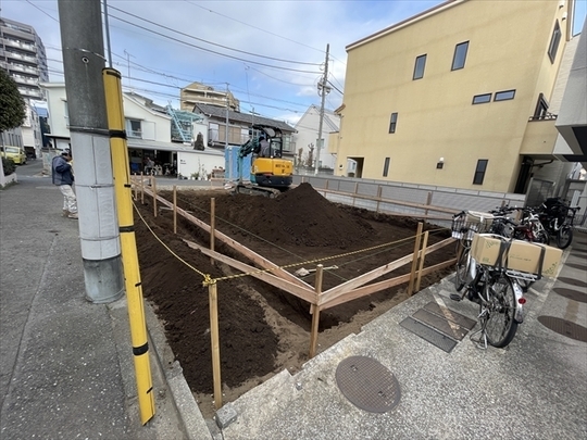 目黒区目黒本町にて、O様邸の工事を開始しました。根切り工事を行っています。
