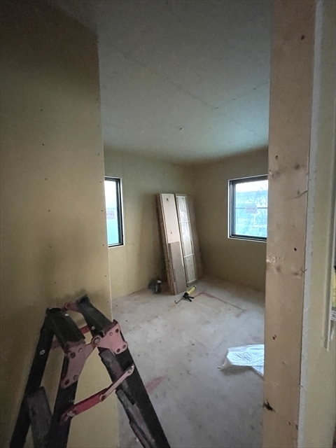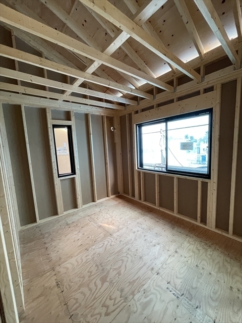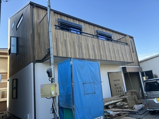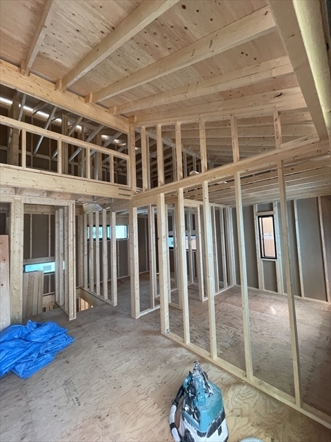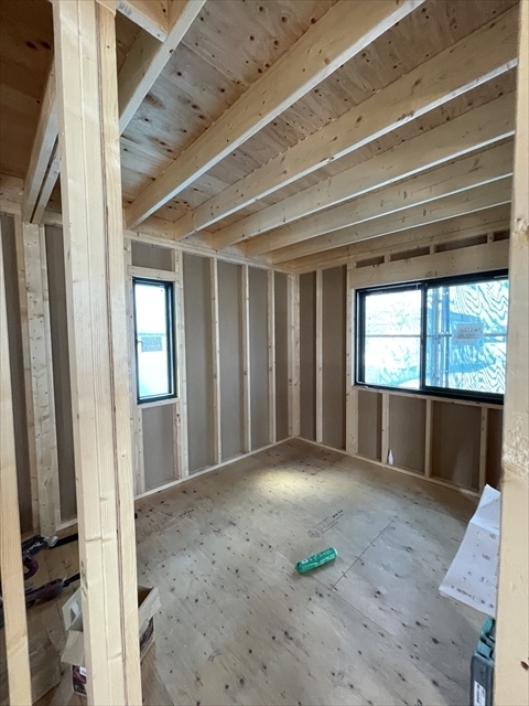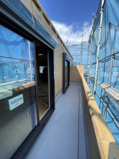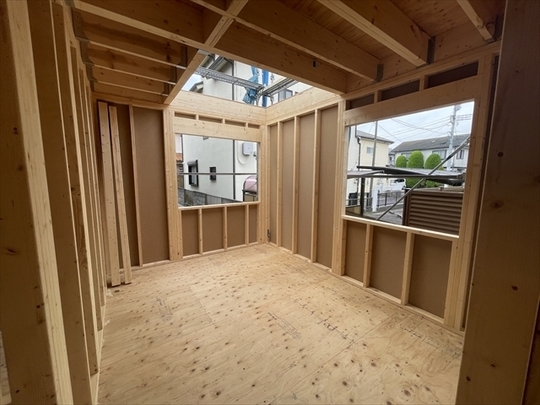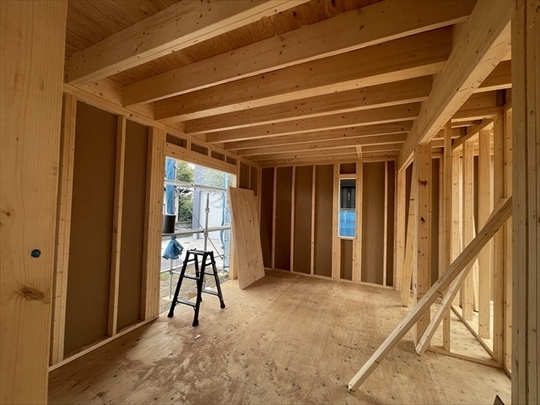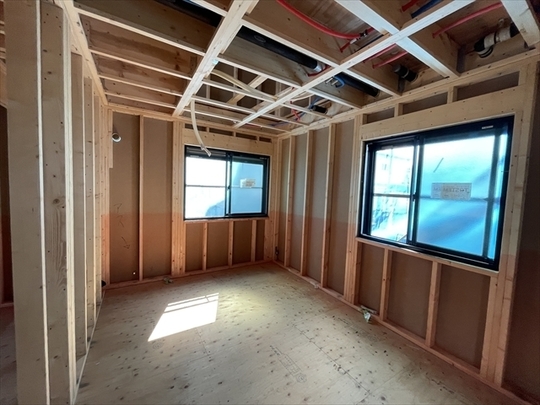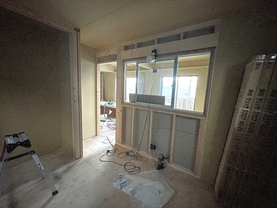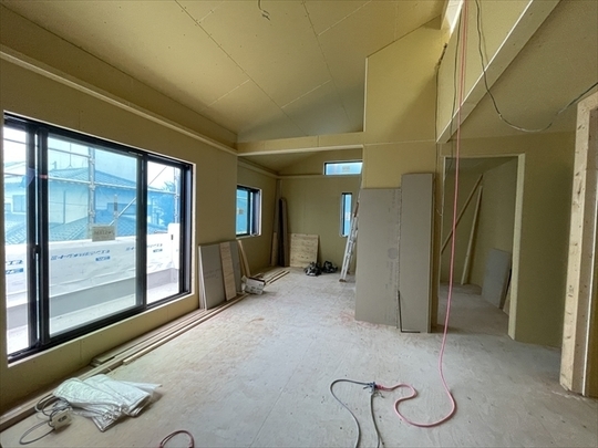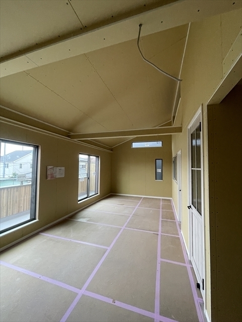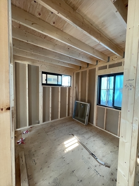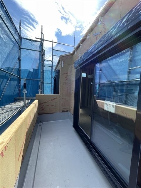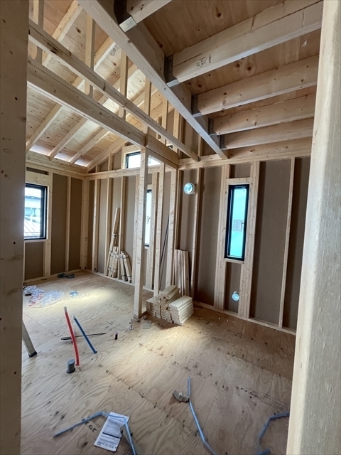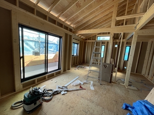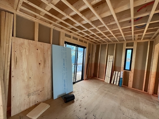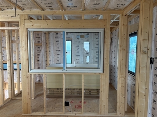 木工事が終了しました。サッシの取り付けを行っています。