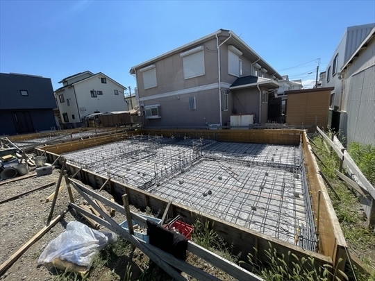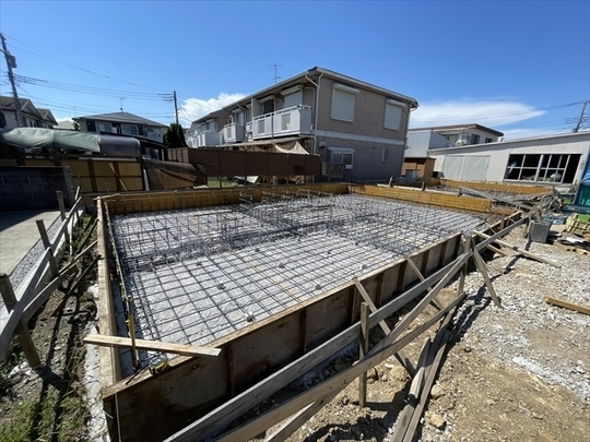 基礎工事を開始しました。2棟の配筋が組み終わっています。