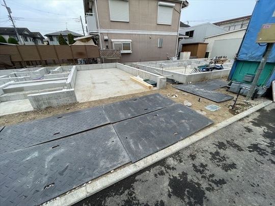 右の棟の地盤改良工事を行いました。