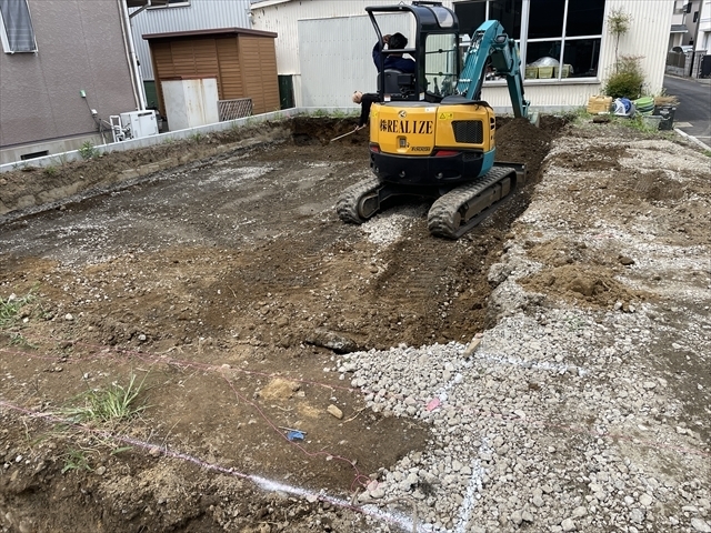工事を開始しました。基礎工事を行っています。