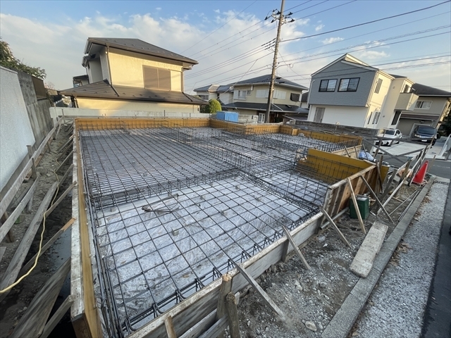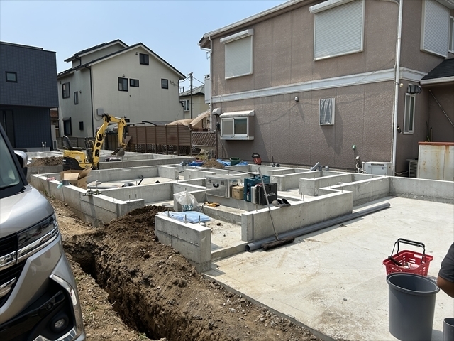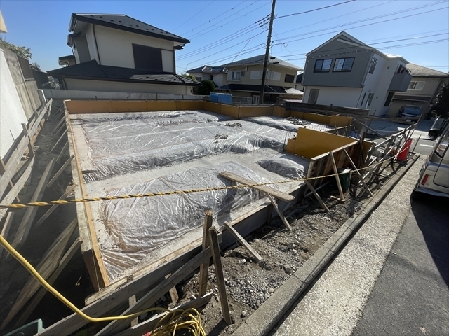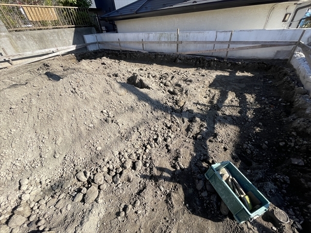 外構工事を進めています。土間コンクリートを打設する準備をしています。