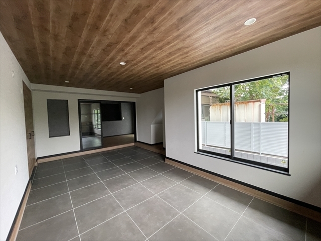 造作工事が終了しました。キッチンとカップボードが設置されています。外部はサ...